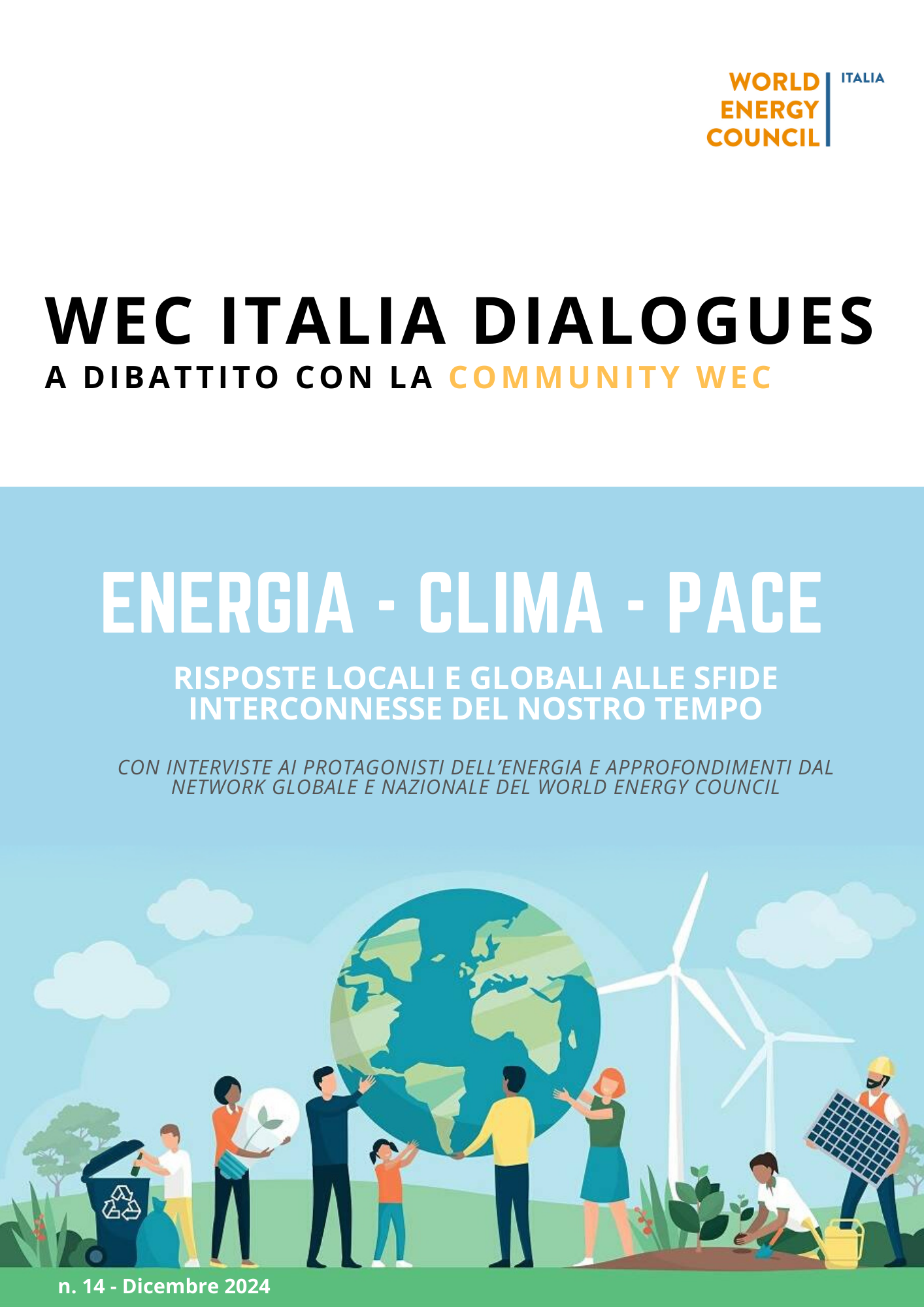 Un approccio inclusivo che è particolarmente valido per il tema che dà il titolo al numero: quel nesso tra cambiamenti climatici e insorgere dei conflitti portato al tavolo dei negoziati di Baku dall’iniziativa “Climate and Peace” e affidato qui alle parole di Francesco Corvaro (Inviato Speciale per il Cambiamento Climatico del Governo italiano). All’iniziativa intra-COP, WEC Italia contribuirà come think tank di riferimento per il nostro Paese insieme all’Atlantic Council: solo l’ultimo tassello di un 2024 che segna una proiezione sempre più internazionale dell’Associazione, raccontata negli editoriali di apertura a cura del nuovo Segretario Generale, Michele Vitiello, e del Direttore per le attività internazionali, Paolo Storti. Ancora la dimensione internazionale, e in particolare le relazioni transatlantiche e il ruolo di aziende ed eccellenze italiane per l’innovazione e lo sviluppo, è al centro delle interviste a Sergio Olivero (Head of Business & Finance Innovation per l’Energy Center del Politecnico di Torino), Pier Lorenzo Dell’Orco (Amministratore Delegato Italgas Reti SpA) e Simone Nisi (Direttore Affari Istituzionali Edison), presenti agli incontri con stakeholder istituzionali e industriali di alto profilo organizzati dal WEC Italia a Washington tra ottobre e novembre. La rubrica WEC International che dà spazio ai Comitati nazionali WEC vola questa volta in Sudamerica con M. Trinidad Castro (Executive Director of WEC Chile), che ci offre un focus su sfide e potenzialità della transizione del Paese e della regione, oltre che sul progetto Women in Energy lanciato nel 2019. Il programma di empowerment femminile cileno anticipa uno dei nuovi progetti per il 2025 del WEC Italia, con un network finalizzato al superamento del gender gap nel settore, di cui si offre una prima panoramica. Ancora spazio alle istituzioni, con Fiorella Corrado (Capo Ufficio Stampa e Comunicazione del MASE) che racconta l’approccio del Ministero alla comunicazione di un tema complesso e troppo spesso polarizzato come la transizione energetica. Quali parole usare? Un suggerimento arriva dalla recente analisi di YouTrend sulla percezione del tema sostenibilità, qui raccontata da Lorenzo Pregliasco. Il dialogo coi cittadini, le associazioni, i territori, torna tra i temi chiave anche nelle interviste di Vittorio Vay (Responsabile Associazioni Ambientaliste e Think tank del Gruppo A2A), e Piero Gattoni (Presidente del Consorzio Italiano Biogas - CIB), che offrono un’ampia panoramica su tecnologie, filiere, processi innovativi, modelli di economia circolare. Tante interviste anche nello speciale IFEC – Italian Forum of Energy Communities, dopo il successo della Quarta Conferenza Nazionale delle Comunità Energetiche dello scorso 27 Novembre, con le firme Carlo Tacconelli (CEO e co-founder di EnGreen), Andrea Guzzetti (Responsabile Comunità Energetiche di EdisonNext) Ivo Gattulli (Managing Director della Business Unit Autoconsumo Diffuso Solarelit powered by Greenvolt), Gianluigi Granero (Direttore Legacoop Nazionale), Luigi Grasso (Direttore Generale Datanetwork), Maurizio Ferraris (Direttore Mercato Maps Energy), Maria Adele Prosperoni (Capo Servizio Ambiente ed Energia Confcooperative) e Francesco Crivena (Presidente della “CER dell’anno IFEC”, la CER Sun-Fai di Dalmine). Nell’approfondimento, un resoconto di contenuti e risultanze della Conferenza Nazionale e della cena-dibattito riservata ai membri del Forum, con la presentazione del libro “Le Comunità Energetiche Rinnovabili: opportunità di sviluppo per i territori e strumento per la transizione energetica”.